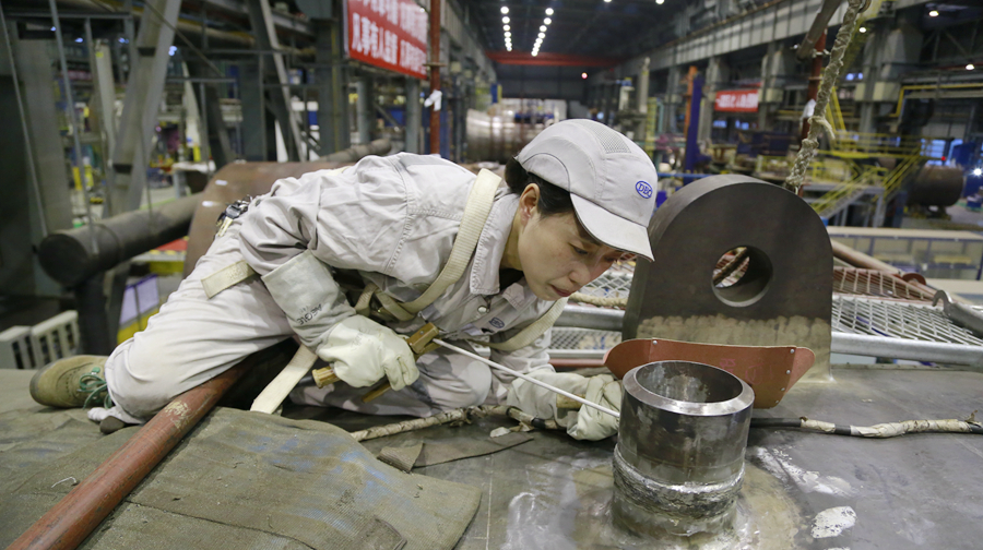 其实在“华龙一号”项目的制造过程中,也并非一帆风顺。第一台蒸汽发生器一次侧水室封头疏水管的焊接,是整个核电行业内的焊接难题。由于是有限空间作业,焊缝所处的焊接位置非常不好,4根管8条焊缝,每条焊缝周长不到8厘米,白映玉精雕细琢,像绣花一样用了6个多小时才完成。用白映玉的话说,“干完活回家辗转反侧了一晚没睡好”,第二天传来PT探伤一次合格的喜讯让白映玉悬着的心落了地。之后,白映玉对操作流程和要领进行归纳总结,做成画册形成标准进行推广,让该工序后续3台产品都做到了探伤一次合格,同时,焊接时间也缩短到了4个多小时。