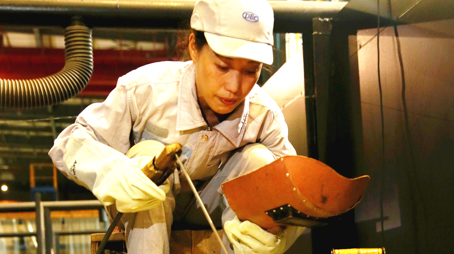 2008年,冲着“焊接核电设备”这个行业内的最高挑战,白映玉南下来到了广州。为了迎接挑战,她先后考取了RCC—M、ASME、HAF603等20多个核电焊工资质,足以适应不同焊法、不同工艺、不同产品的需要。如果说,在压力容器行业偶尔还能见到几个女焊接工人的话,那么到了核电的领域,她就是一枝独秀的“焊接之花”。
